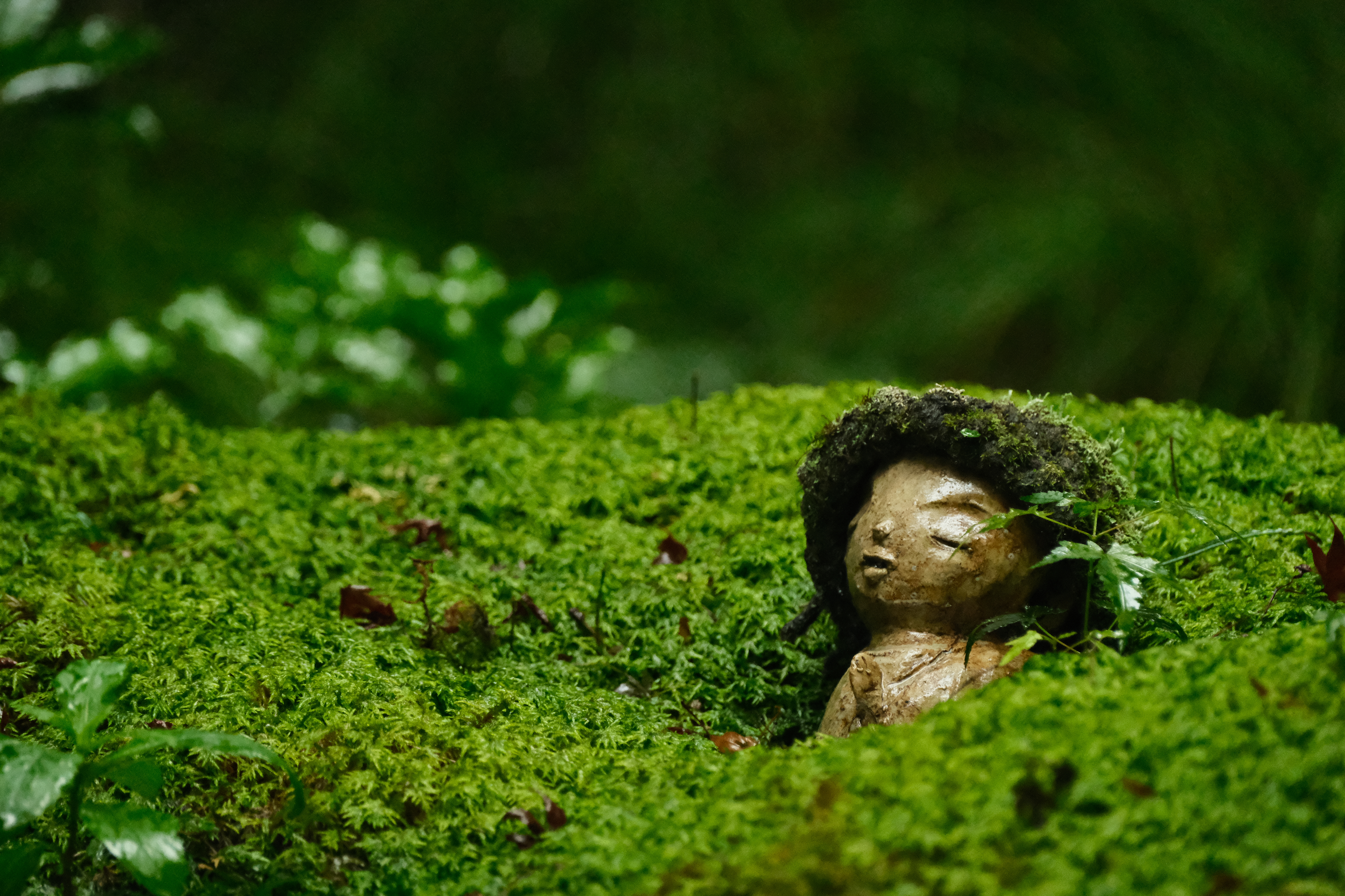 In Kyoto I took advantage of the Moss Passport to visit a number of temples. This jizou is by a river near Sanzenin.